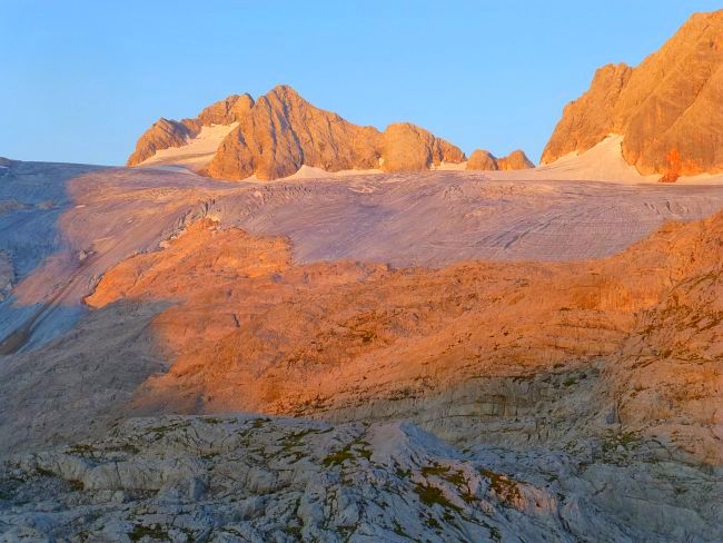 Besonders impossant ist der Dachstein selbst, der von der Morgensonne in ein