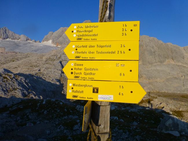Ich starte meinen zweiten Tag. Dieser Wegweiser auf den Hohen Gjaidstein gibt