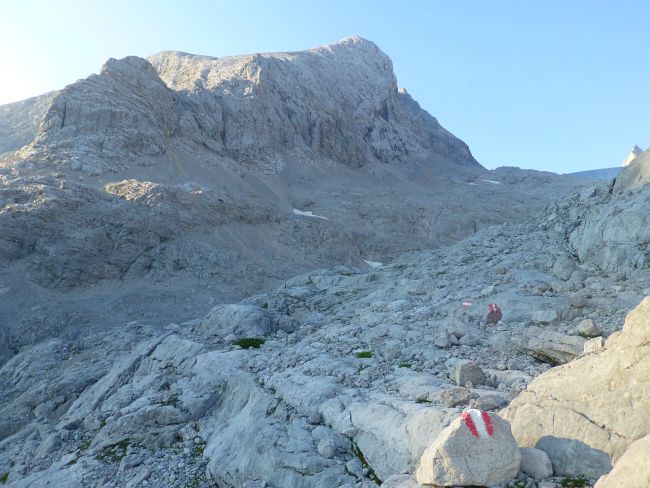 Die Steinwüste des Gjaidkars mit Blick zum Hohen Gjaidstein