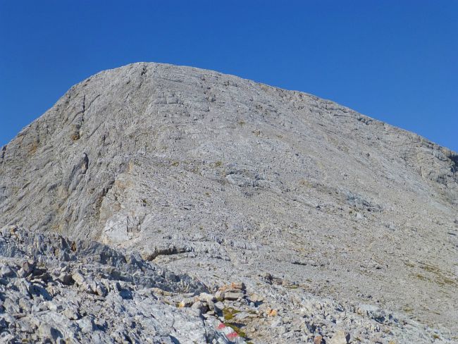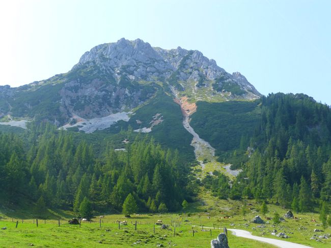 Bischofsmütze, von der ein großer Teil beim Felssturz 1994 ins Tal