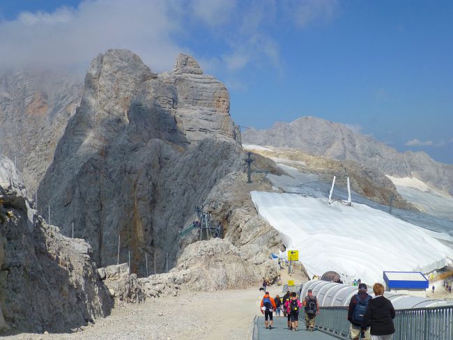 leider der Massentourismus - dem Eispalast wurde als Sonnenschutz ein