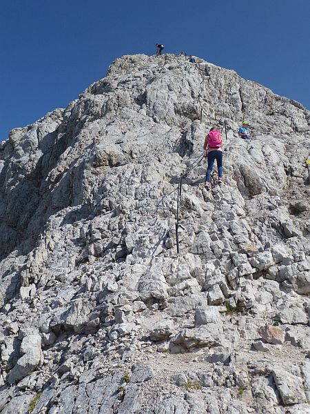 Nach einer Gipfelpause sehe ich dann den Klettersteig, der über den Grat zum