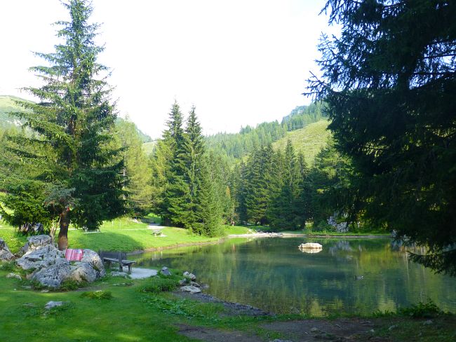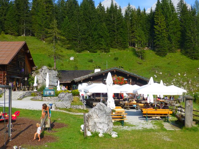 der Türlwandhütte hüllt sich der Hohe Dachstein noch in Wolken, am grünen