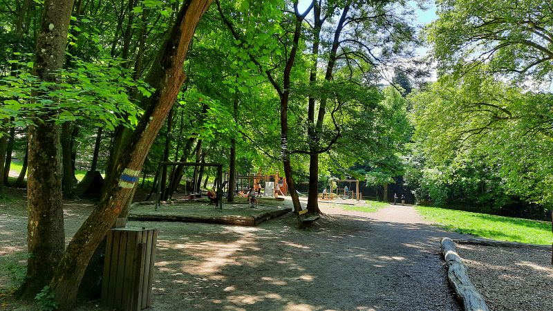 links in den Dehnepark ein, komm am großen Spielplatz vorbei und...