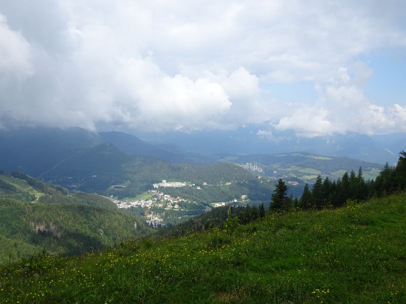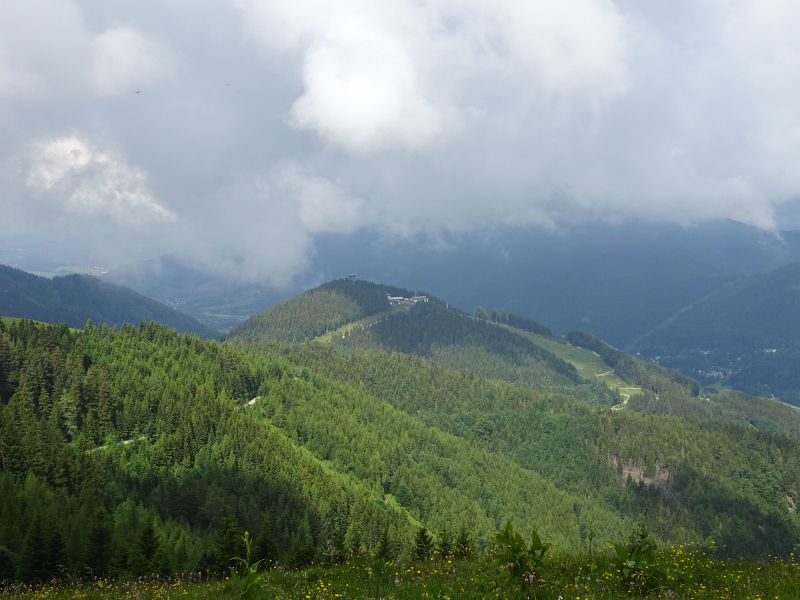 die Wolken heben sich kaum - hier der Blick zum Hirschenkogel