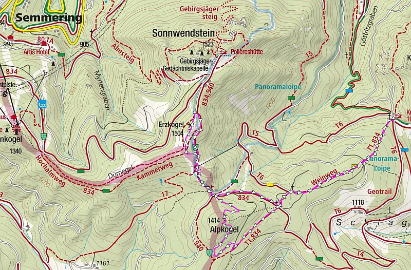 Heute musste es wieder mal ins Gelände gehen. Der Semmering mit seinen mittleren Höhen um die 1500m war da gerade richtig. Ein paar Höhenmeter, eine gute Aussicht und passendes Wanderwetter habe ich mir erwartet. DIe Höhenmeter passten, die Aussicht nicht, das Wetter naja.....Die beiden Gipfelsind sehr nahe beieinander, am ALpkogel geht's nur unmarkiert rauf- ohne Aussicht - der Erzkogel hat ein großes Gipfelkreuz mit besserer Aussicht