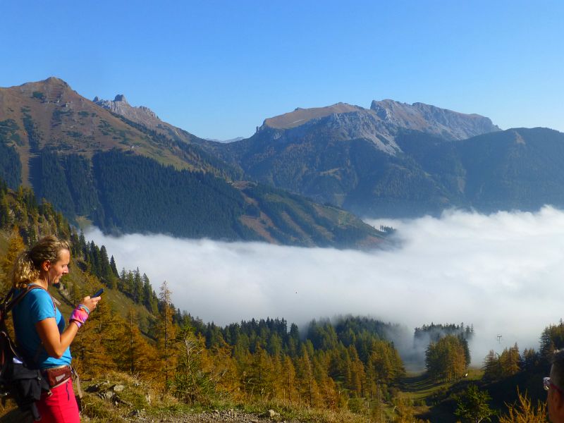 Während im Tal um den Präbichl noch dichter Nebel liegt, ist es weiter oben