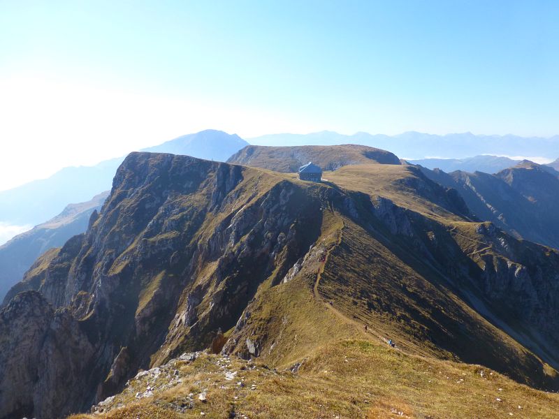 Blick vom Gipfel zurück zur Hütte