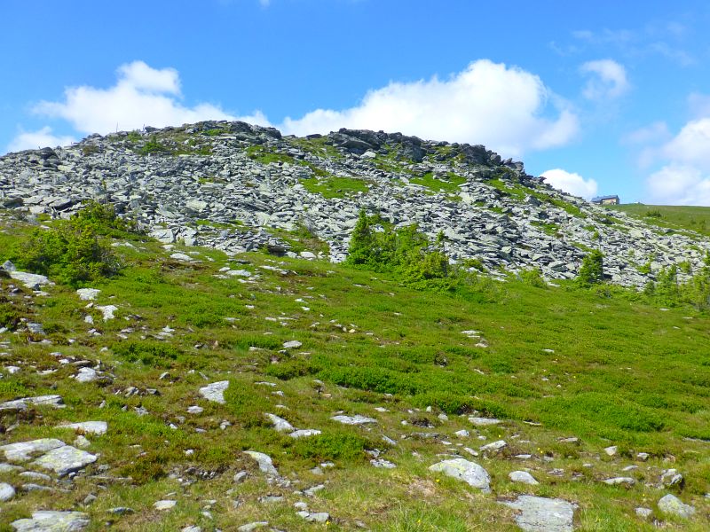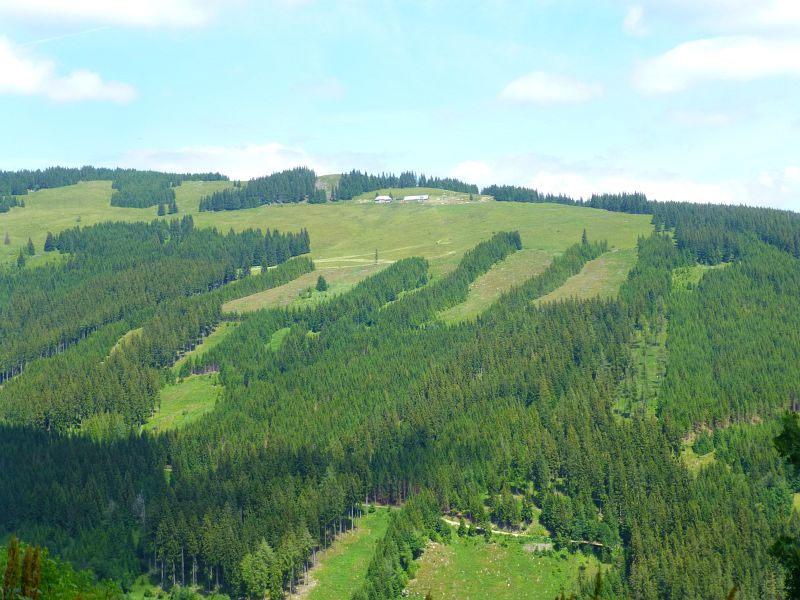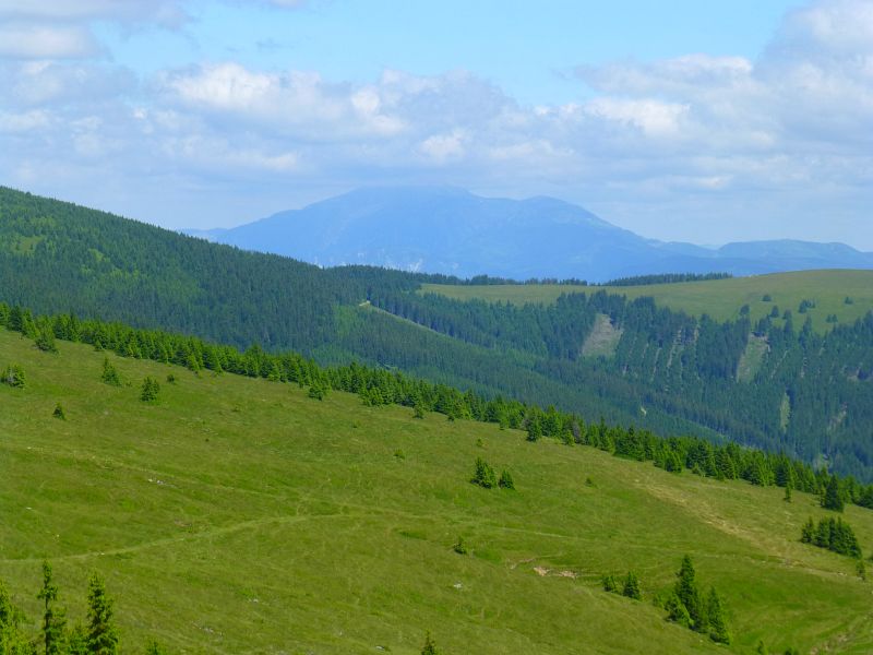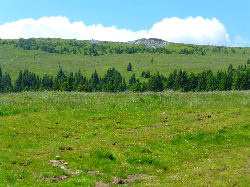 Almlandschaft im Wechselgebiet - bei diesem Steinhügel möchte ich dann