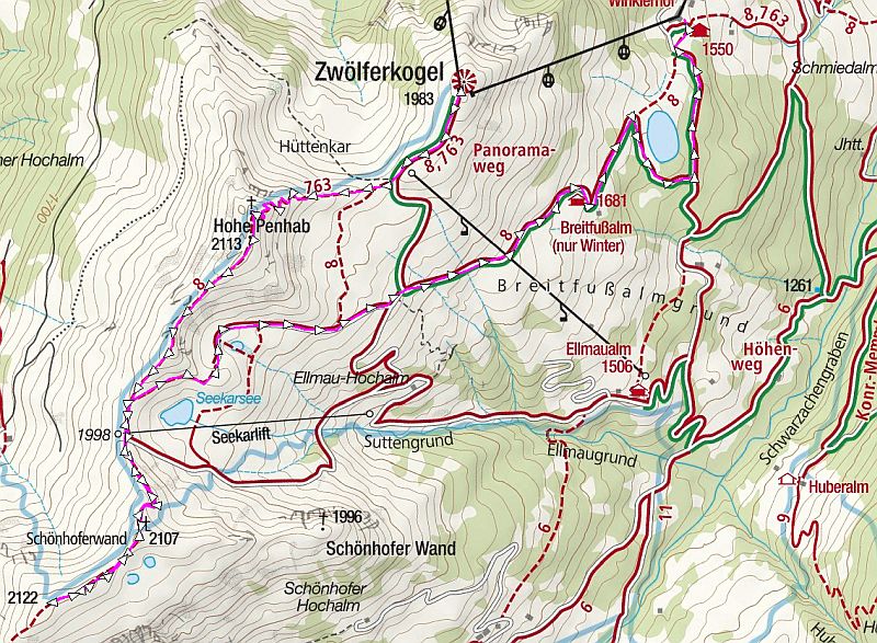 Seite verläuft der Höhenweg vom Schattberg über den Stemmerkogel und