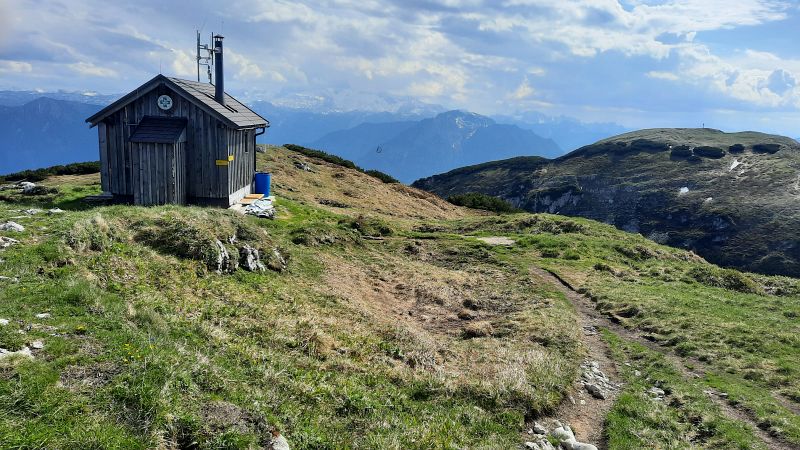 Bergrettungshütte mit Rückblick auf den Losergipfel rechts außen