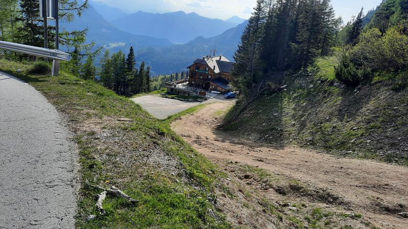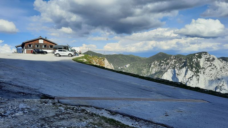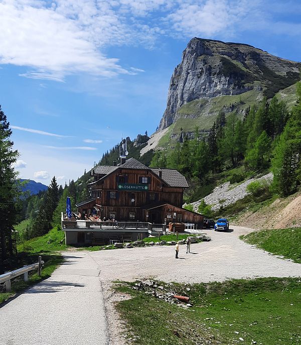 der Loserhütte , wo man schon den markanten Gipfelbau des Losers sieht