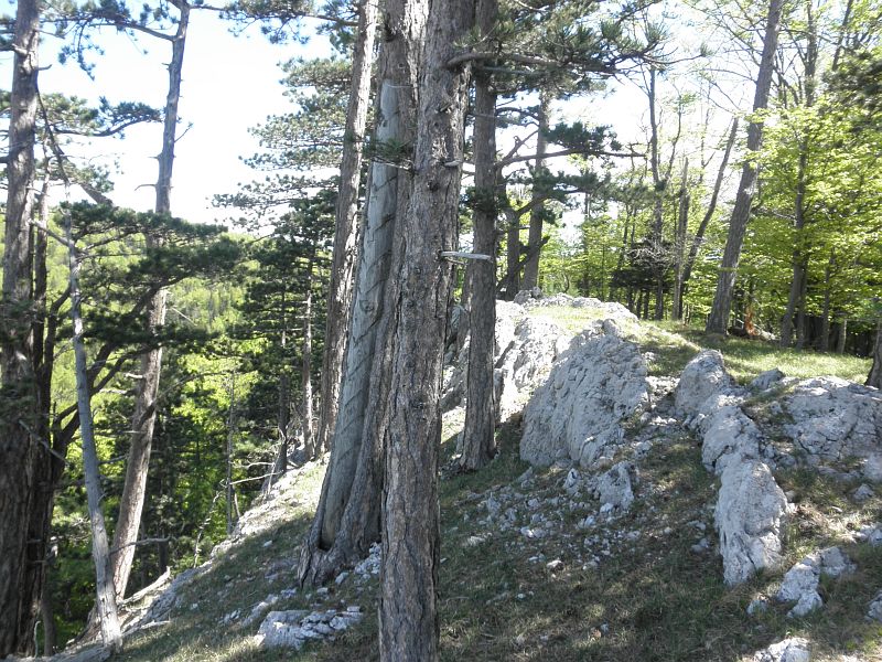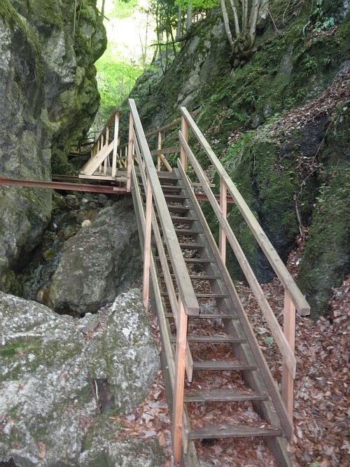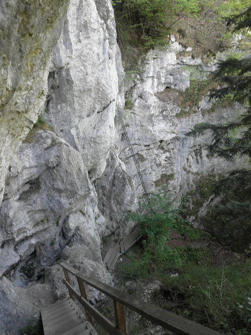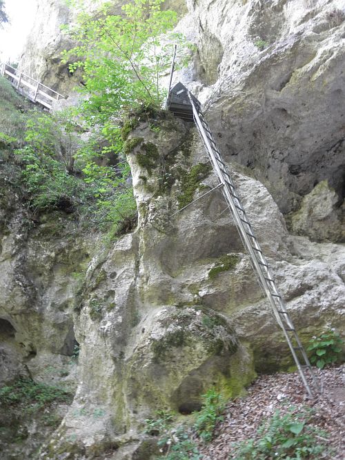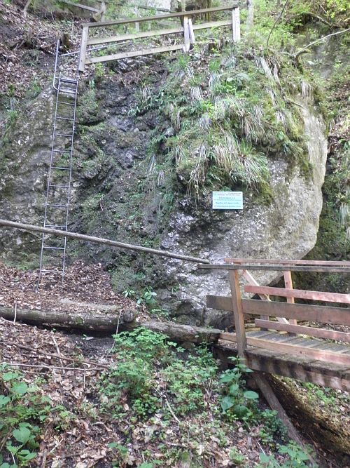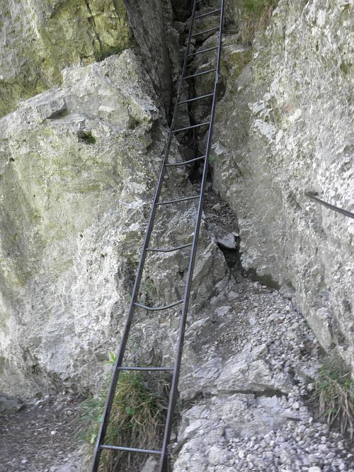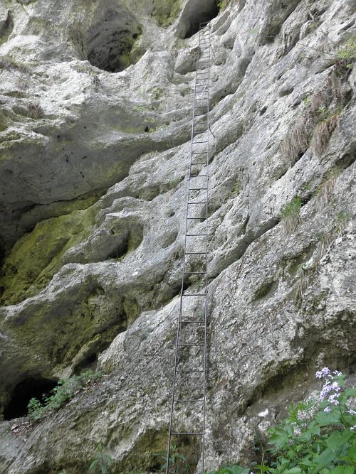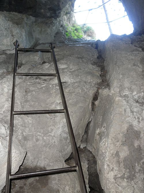 Der Steig führt über zwei längere Leitern und durch zwei Felsdurchschlupfe