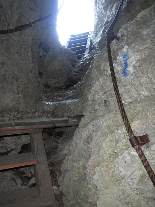 Über Holzstiegen geht es immer enger werdend weiter....