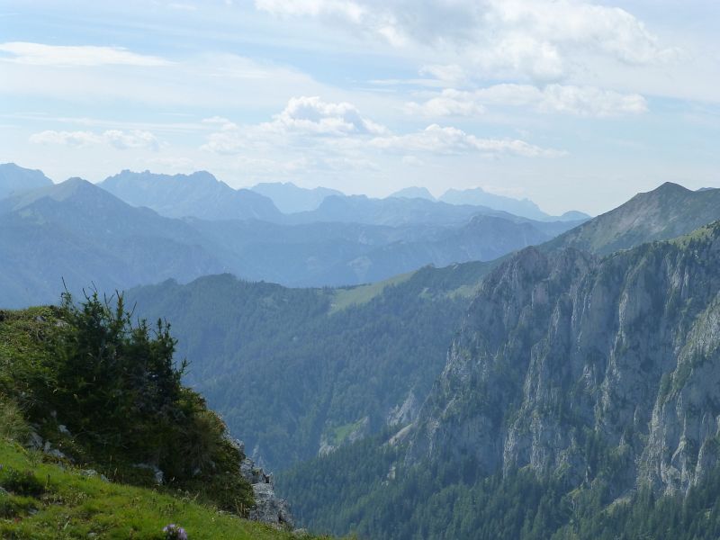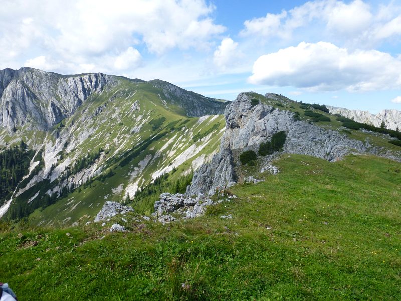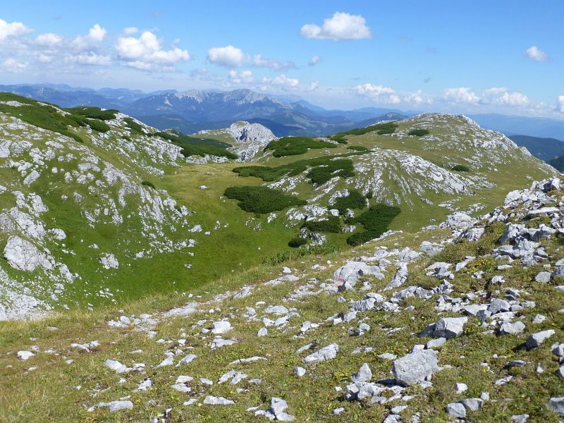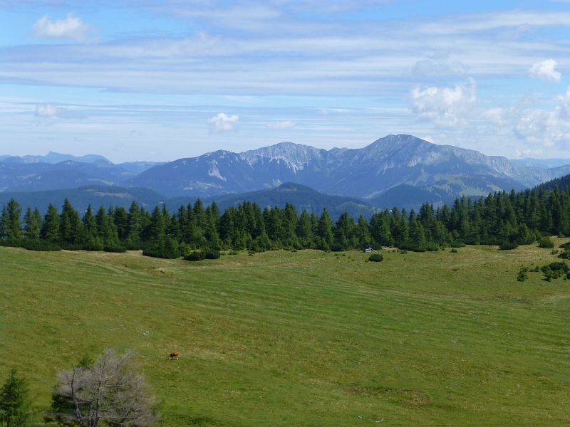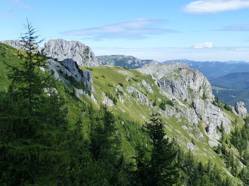 Von hier zeigt sich auch der Hochschwabgipfel (ganz hinten)