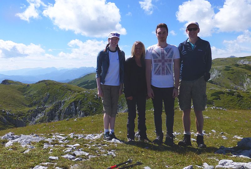 Familientour mit meiner Tochter Nina, Elisabeth und ihrem Sohn Stefan in das wunderschöne Hochschwabgebiet, das sich zu dieser Jahreszeit noch in einem satten Grün zeigte. Auffahrt mit dem Doppelsessellift von Aflenz auf die Bürgeralpe und über den sehr steilen Zlacken zum gleichnamigen Kogel