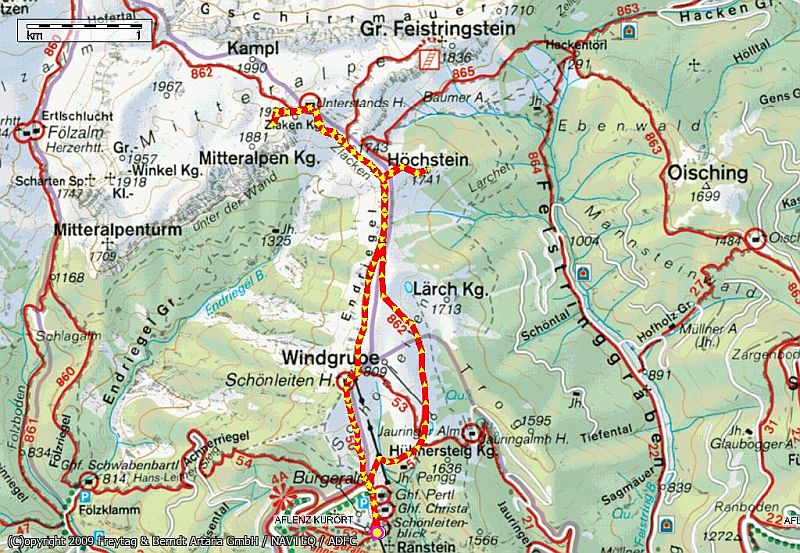 Vor uns zeigen sich Höchstein (rechts) und links darüber der Feistringstein